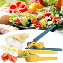 6. **سهلة الاستخدام:** ما عليك سوى وضع البيض أو الفاكهة في الأخدود واضغط على المقبض بسهولة لقطعها بشكل جيد.
