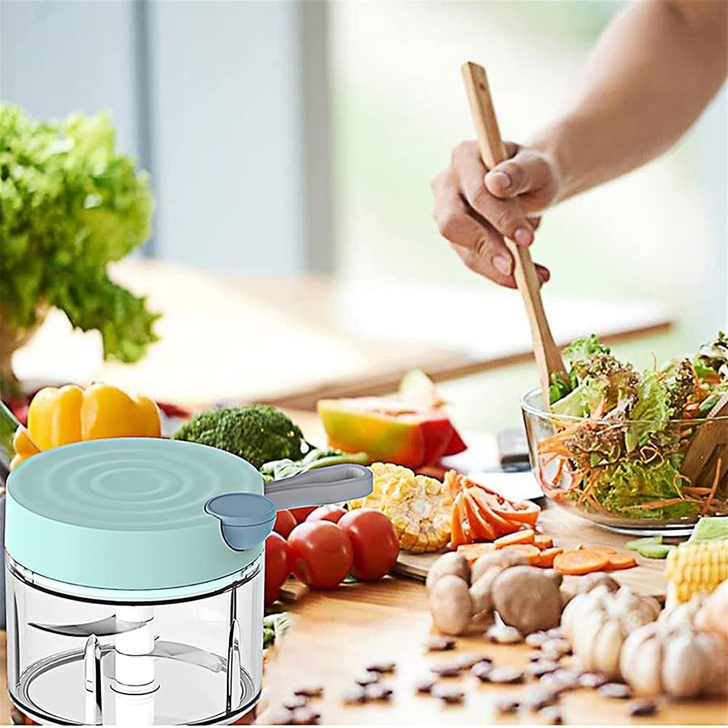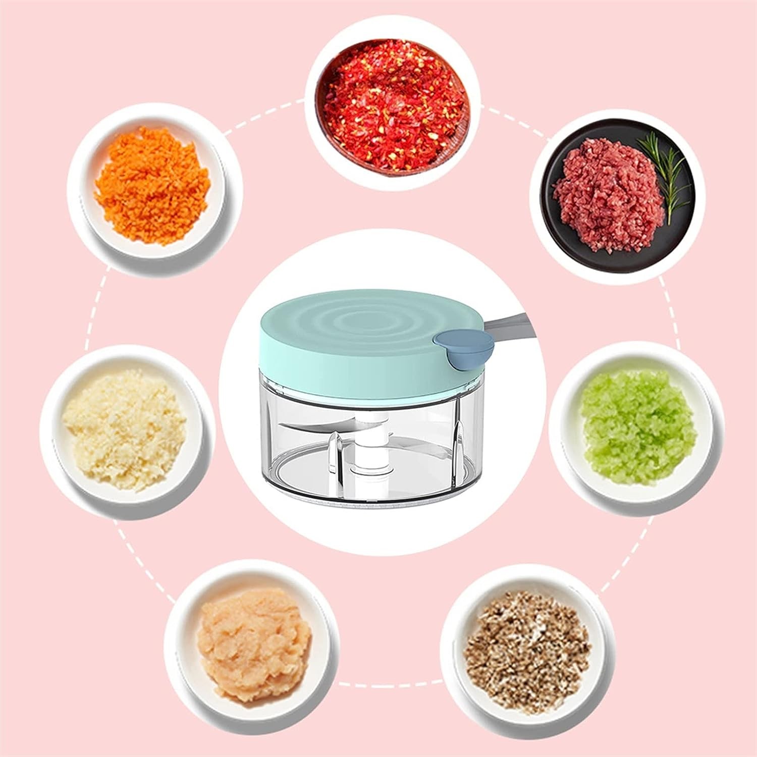 2. **ملحقات متعددة:** تأتي مع مجموعة من الملحقات المفيدة، بما في ذلك قطاعة الثوم بحبل المحمول وقطاعة الخضروات. هذه الملحقات تتيح لك تقطيع الثوم والبصل والخضروات بسهولة وبشكل متساوٍ.