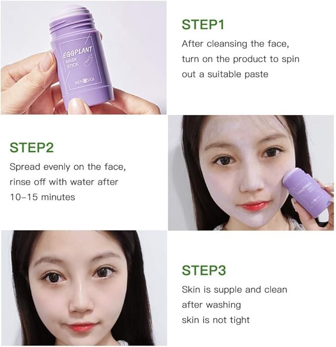 🍃كيفية الاستخدام🍆 1. قومي بإخراج المعجون ووضعه على الوجه. 2. ضعيه بالتساوي على الوجه واتركيه لمدة 10 دقائق تقريبًا. 3. بعد أن يجف، اشطفيه بالماء.