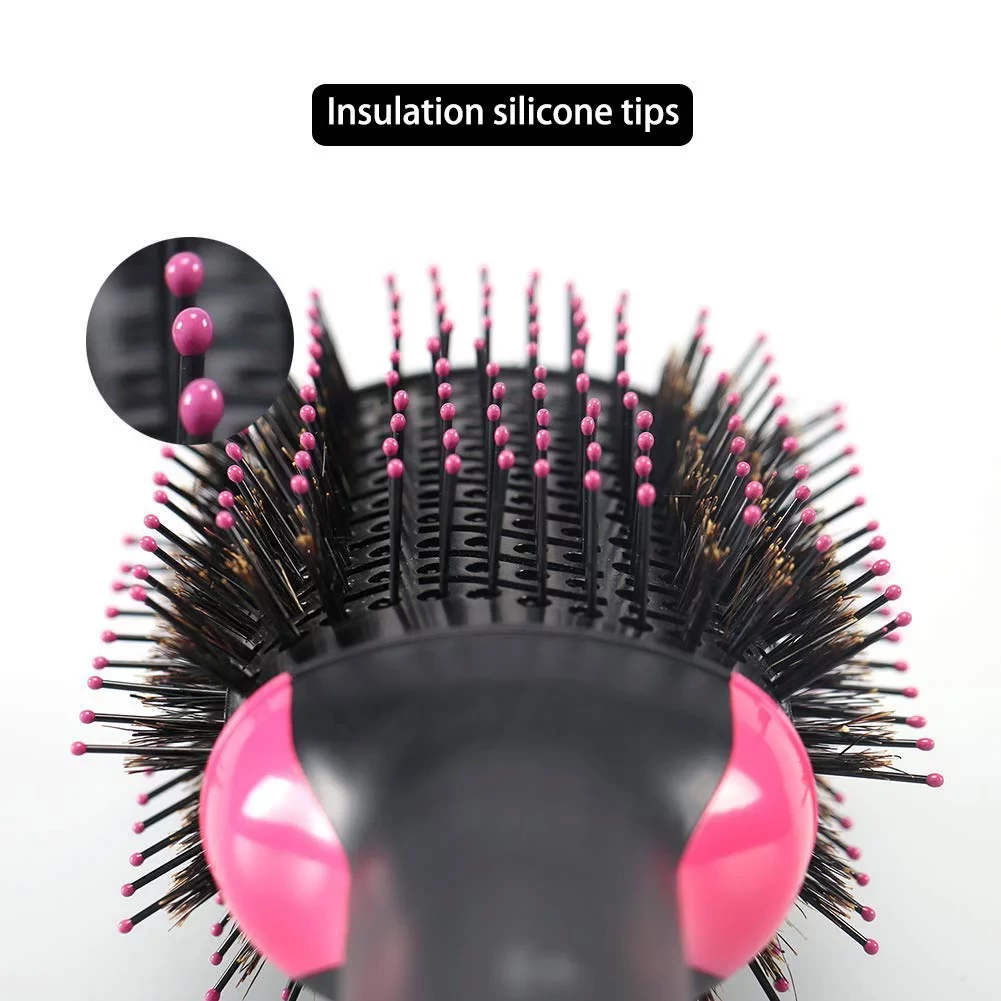 يجمع هذا المجفف بين وظائف مجفف الشعر ومشط التصفيف في جهاز واحد، مما يمكنك من تجفيف شعرك وتصفيفه بسهولة وفعالية. يمكنك جعل شعرك مجعدًا أو مفرودًا في نفس الوقت، مما يوفر لك الوقت والجهد.