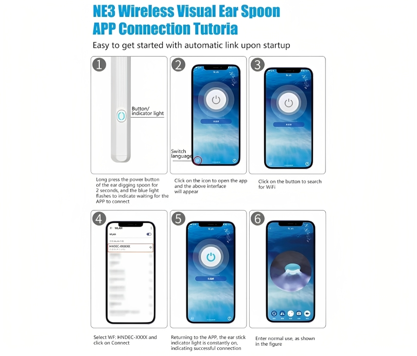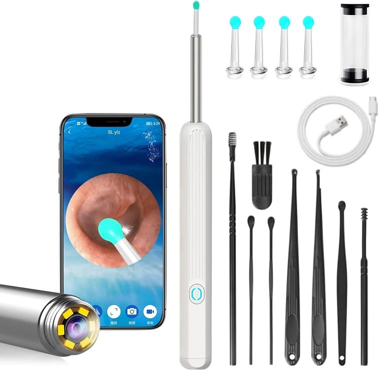 كاميرا تنظيف الأذن بدقة عالية، مع عدسة بزاوية واسعة 360 درجة و6 أضواء LED حرارية لرؤية واضحة وفيديو مباشر عالي الدقة.