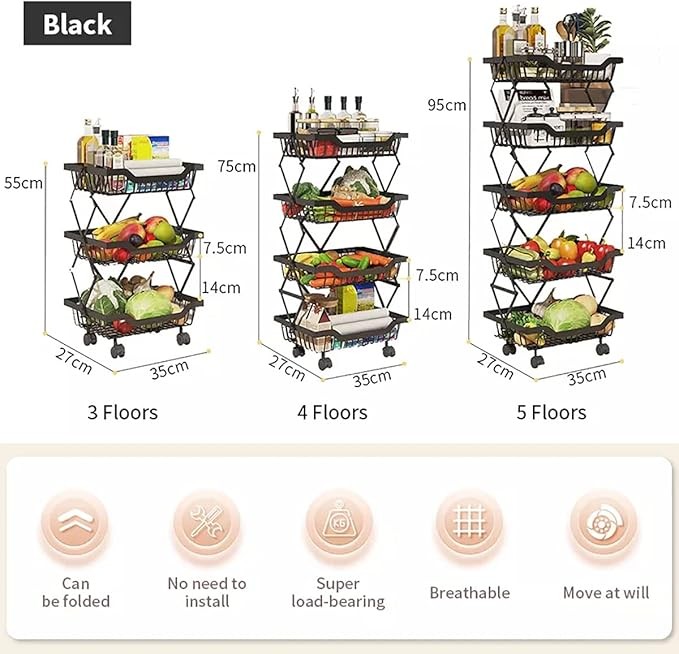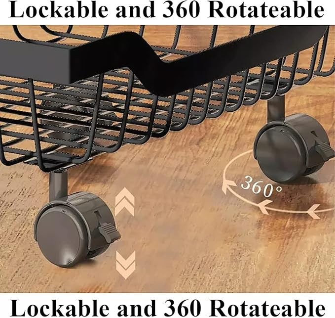 🥝【سهلة الحركة】 حامل السلة به أربع عجلات متينة، ويمكن تثبيته في مكانه بواسطة القفل الموجود على العجلات والذي يمكن تحريكه بسهولة في كل مكان.