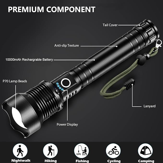 إضاءة متفوقة: تتميز هذه المصابيح بإشراق عالي يصل إلى 90000 لومن، مما يجعلها مثالية للاستخدام في الأماكن ذات الإضاءة المنخفضة أو في الهواء الطلق حيث يحتاج المستخدمون إلى إضاءة قوية وواضحة.