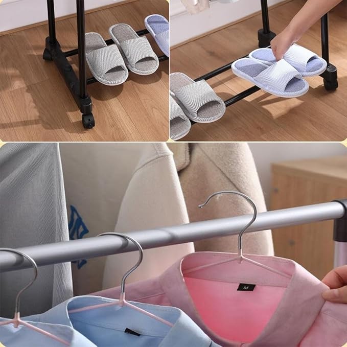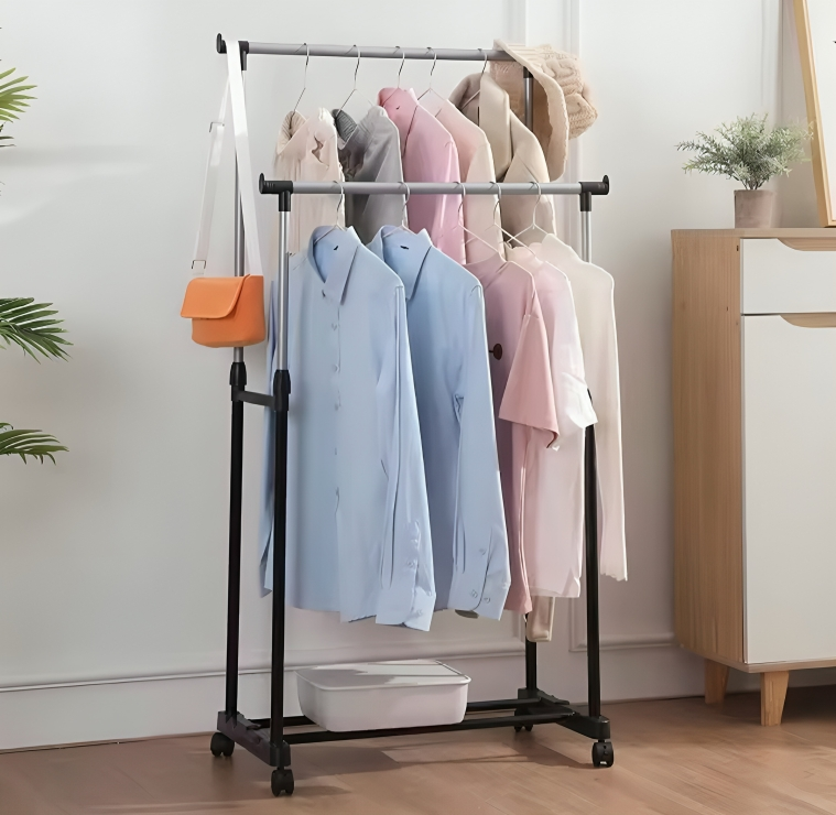 حامل ملابس معدني متين بعجلات – عملي وأنيق