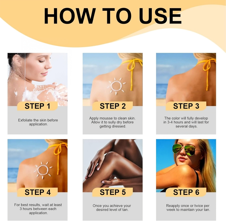 سريع الجفاف: يجف خلال 3 دقائق ويعطي تأثير التسمير خلال 3 ساعات.