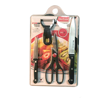يتضمن لوح تقطيع خشبي وسكين تقشير وسكين طاهي ومقشرة وسكين متعدد الاستخدامات. شفرات عالية الجودة من الفولاذ المقاوم للصدأ ذات حواف حادة للتقطيع والتقطيع بكفاءة. مقابض مريحة / 3 قبضة مريحة وسهولة في التعامل. لوح التقطيع الخشبي مصنوع من مادة متينة ومتينة ، ومناسبة لتقطيع الخضار ، واللحوم ، والفواكه. تصميم مدمج وخفيف الوزن لسهولة التخزين والنقل. سهلة التنظيف والصيانة ، مما يجعلها إضافة خالية من المتاعب لأدوات مطبخك.