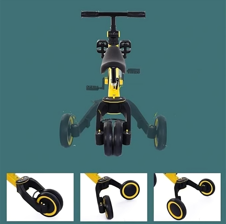 تصميم 4 في 1: يمكن تحويلها بين عدة أوضاع لتناسب مراحل نمو الطفل، مثل دراجة توازن، دراجة بثلاث عجلات مع أو بدون دواسات.