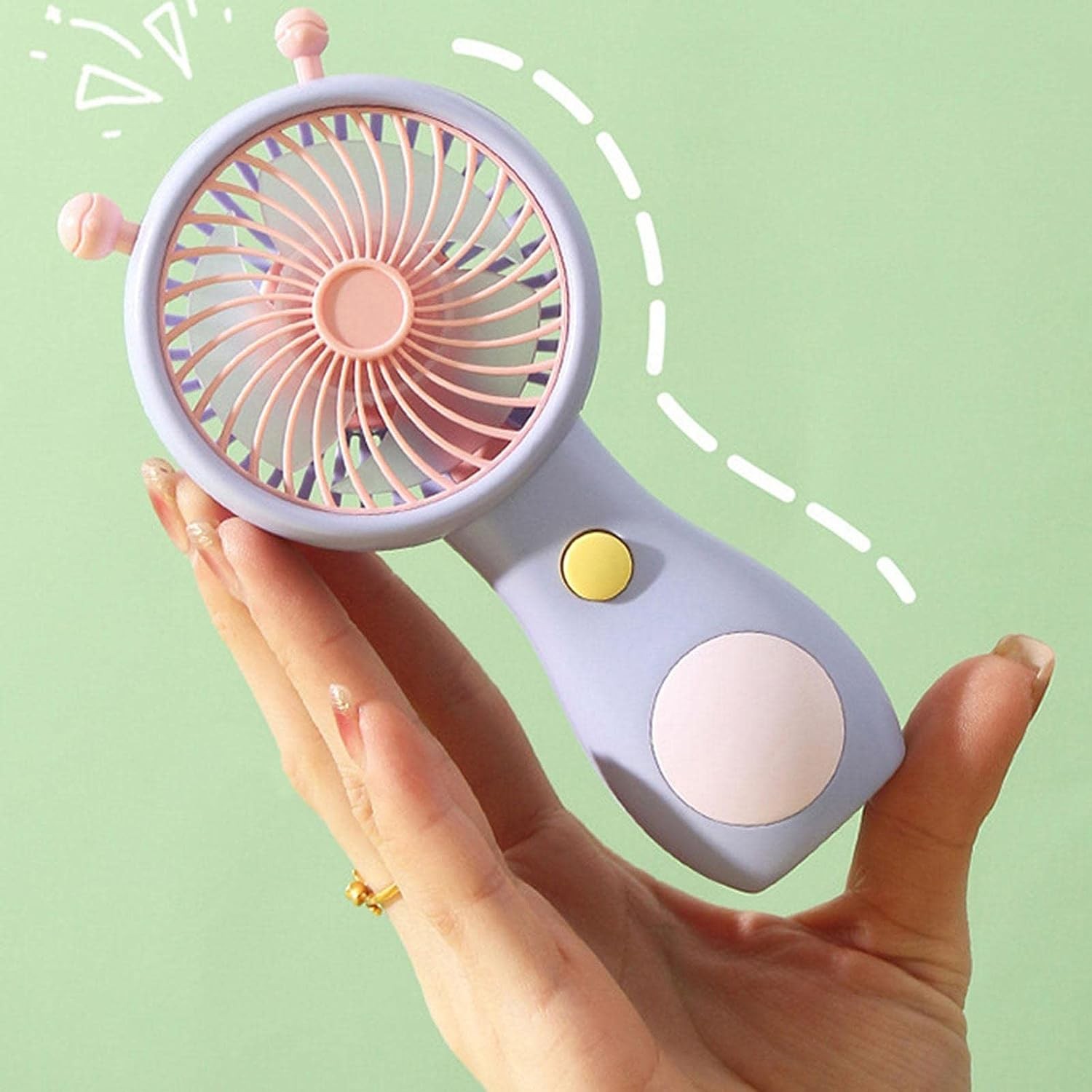 تتميز هذه المروحة الشخصية بتصميم مجس الكارتون وأسلوب كرتوني لطيف يضفي عليها مظهرًا ممتعًا ومميزًا. يمكنك اختيار اللون الذي يعجبك من بين الأرجواني الفاتح، الأزرق، أو الأخضر.