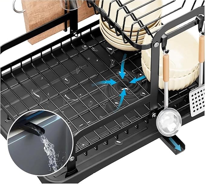 : يوفر مساحة واسعة لتجفيف الأطباق، الأوعية، الأكواب، والأواني.