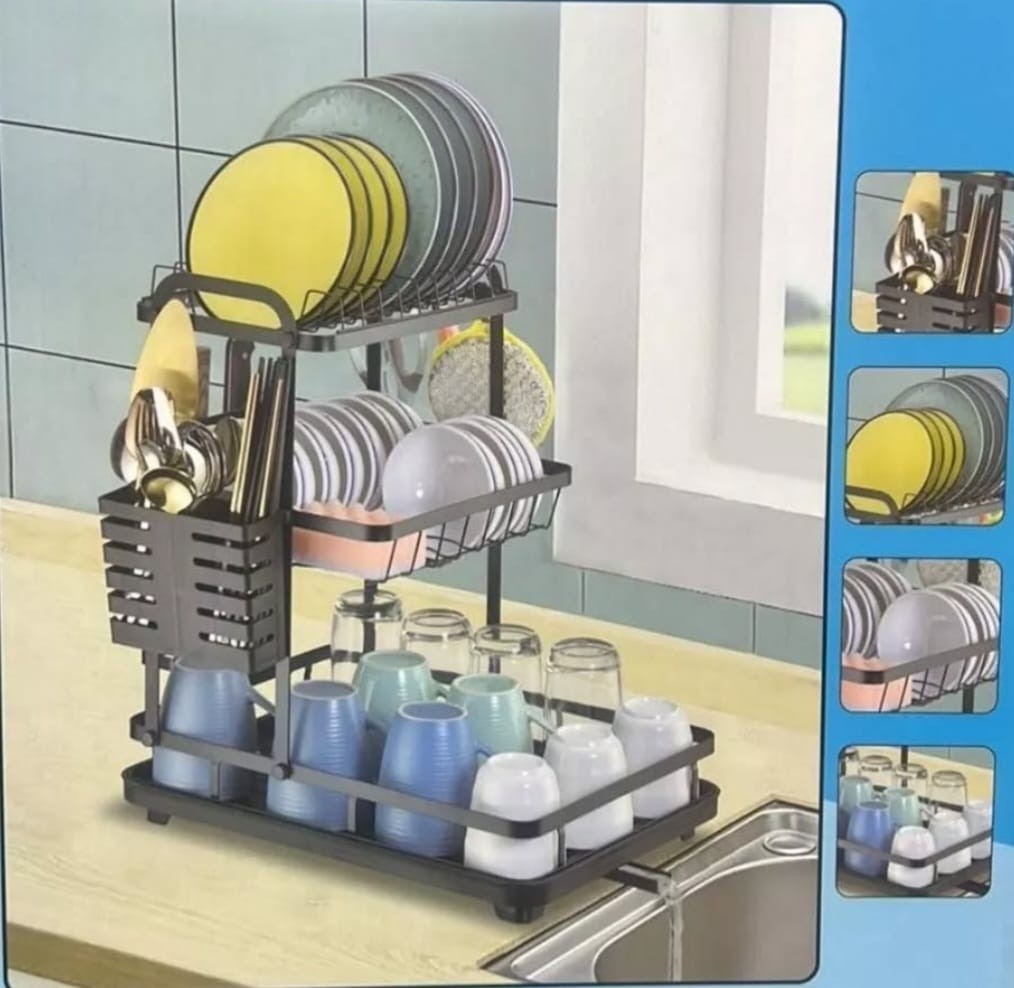 رف تجفيف الأطباق فوق الحوض 3 طبقات